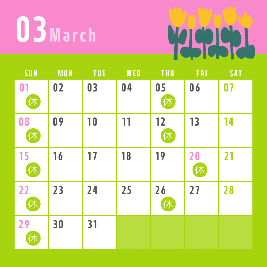 2026年3月の診療日のご案内